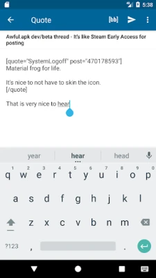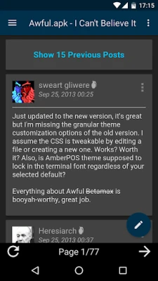 If you have problems with the app, don't just give the app a bad review. We don't really care about or read them for that matter. Instead DO post in the Awful Android app thread in IYG.