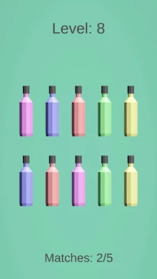 Strategic Swapping: Unlike traditional matching games, "Bottle Matching" requires you to swap the positions of two bottles at a time. Tap two bottles, and they instantly exchange places. π
