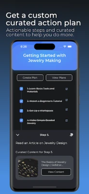 Personalized Action Plans: Receive customized and curated plans that not only spotlight your curiosities but also inspire you to take meaningful steps towards embracing them.