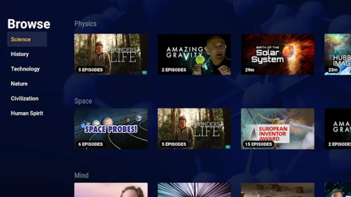 Watch CuriosityStream originals like Stephen Hawking’s Favorite Places, Miniverse, and First Man, in addition to BBC Documentaries like The Wonders of Life and Horizon. Dive deep into your favorite science, technology, nature and history documentaries.