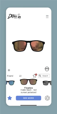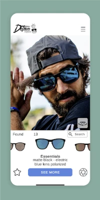 The app allows you to try on stylish sunglasses models from DetourSunglasses using the mobile app. It is very easy. Just open the app and choose a model for you. Place your face in front of the camera and your model will appear on the screen in augmented reality technology.
