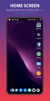 Mac Launcher is a standard Home Screen launcher, computer launcher which provides a unique way to organise your home screen into beautiful desktop letting you easily access installed apps, manage files(File Manager), universal search for Android, access quick settings, view deleted notifications and more just one tap.