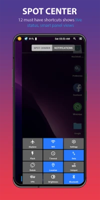 - Spot Center provides 12 quick settings which shows the live status of quick settings tiles like Computer Launcher