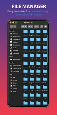 Mac Launcher core functionality is to make you feel just like you are using a MAC PC.So for that we have "Apps drawer" and "Machintosh HD" - A core functionality of the app to show all your installed apps at one place, manage all your files. All the operations of a file manager are present in "Machintosh HD" like cut, copy, paste, delete, zip, unzip and more...