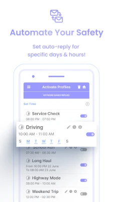 Safe Driving - Hands-Free Calls Auto Reply -Drive Mode SMS Auto Responder – solution for distraction-free driving. 1. Stay compliant with hands-free laws, 2. Avoid expensive texting & calling tickets, 3. Reduce the risk of accidents! Driving Assistant App designed to enhance your focus on the road, empowers you to auto reply to missed Calls / SMS + 15 messengers effortlessly while driving.