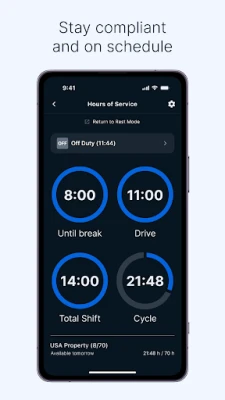 • Receive alerts for upcoming breaks and potential violations