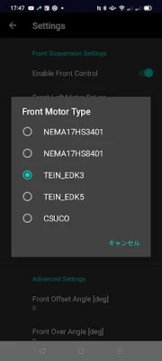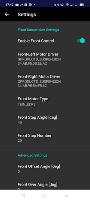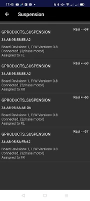 The App can access the motor driver board via Bluetooth Low Energy. It means that it can control the suspension system from inside a car even if driving. The suspension control system supports many dampers with a knob to adjust the damping force power. It can be supported by several types of knobs such as a number of steps, or angles.