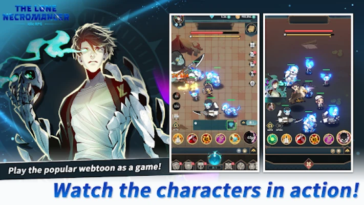 Play the popular webtoon "The Lone Necromancer" as an idle RPG! Become the main character Seongwu Yu and create your own undead army!