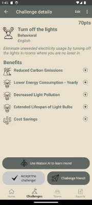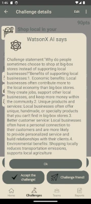 Participants earn points for their involvement, and the educational platform Watsonx.ai offers insights to deepen their understanding of the environmental impact of their choices. Additionally, Watsonx.ai categorizes user-generated challenges, aiding others in finding challenges aligned with their interests.