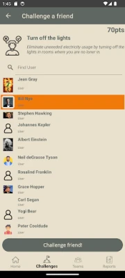 Accept challenges, earn points, challenge others and join teams to work together on common causes.