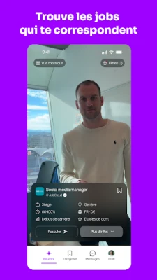 Découvre les offres d’emploi, stages et places d'apprentissages à travers des vidéos et des photos créées par les recruteurs. Ce format visuel te permet de mieux comprendre les postes et l'environnement de travail avant de postuler. C’est comme une visite virtuelle de ton futur lieu de travail!