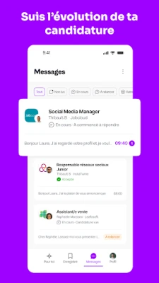 - Reçois des notifications instantanées lorsque les recruteurs interagissent avec ta candidature.