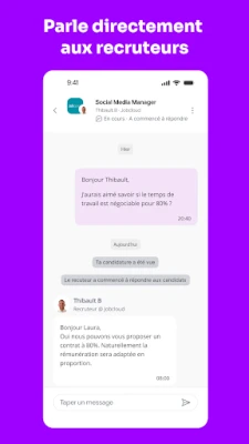 - Postule directement et discute avec les recruteurs, sans passer par la case CV ou lettre de motivation.