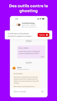 Oublie les CV et lettres de motivation: avec notre appli, tout se fait directement via chat. De plus, notre politique de no-ghosting garantit que chaque candidature reçoit une réponse. Découvre comment Youma peut transformer ta carrière dès aujourd’hui!